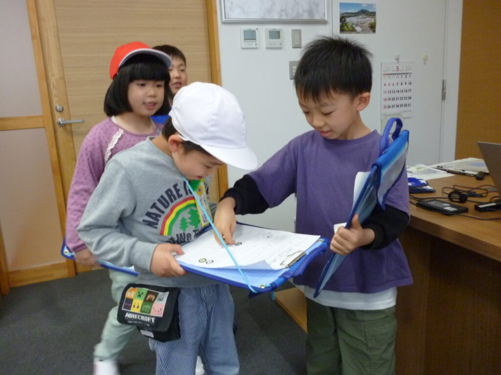 ミッションをクリアすると、2年生が1年生にシールを貼っていました。