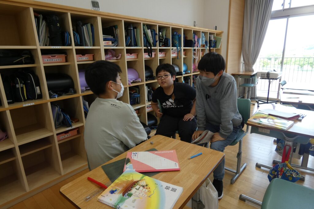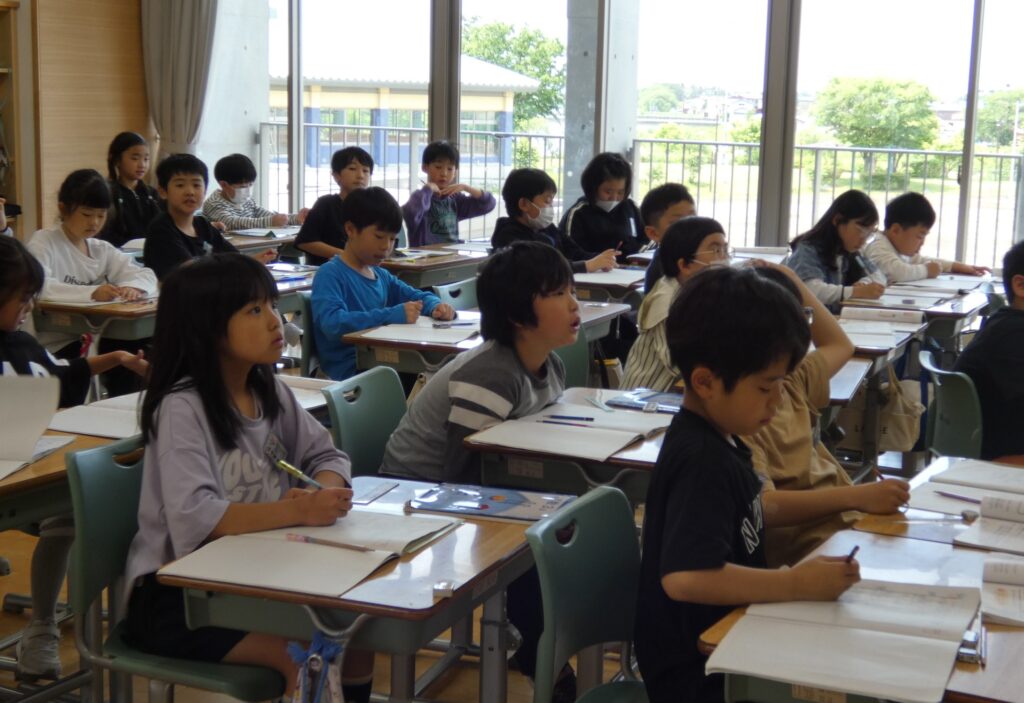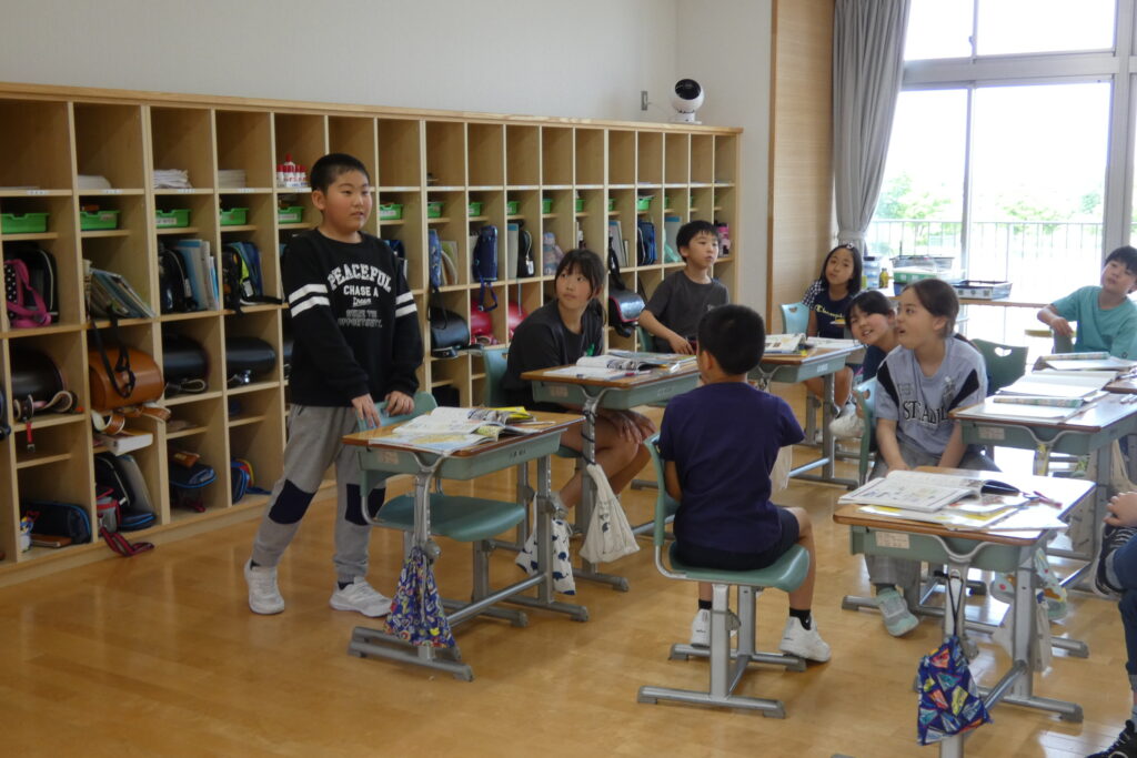 運動会も終わり、通常の学習に励む子どもたちです。5年生は明日の田植えに向けて打合せ中です。