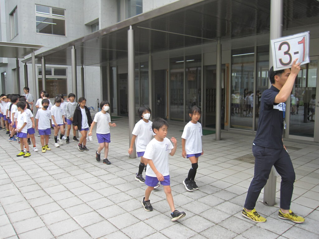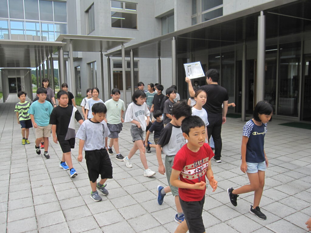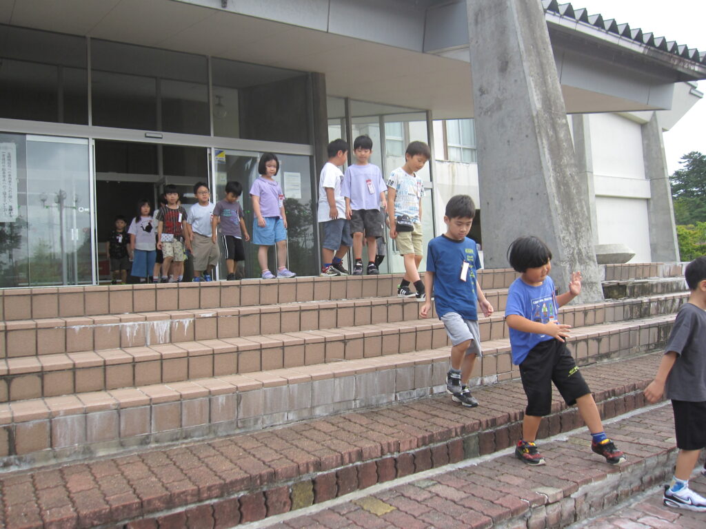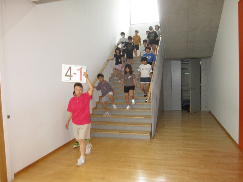 段差が大きいので、低学年には上り下りが大変でしたが、安全に避難訓練ができました。