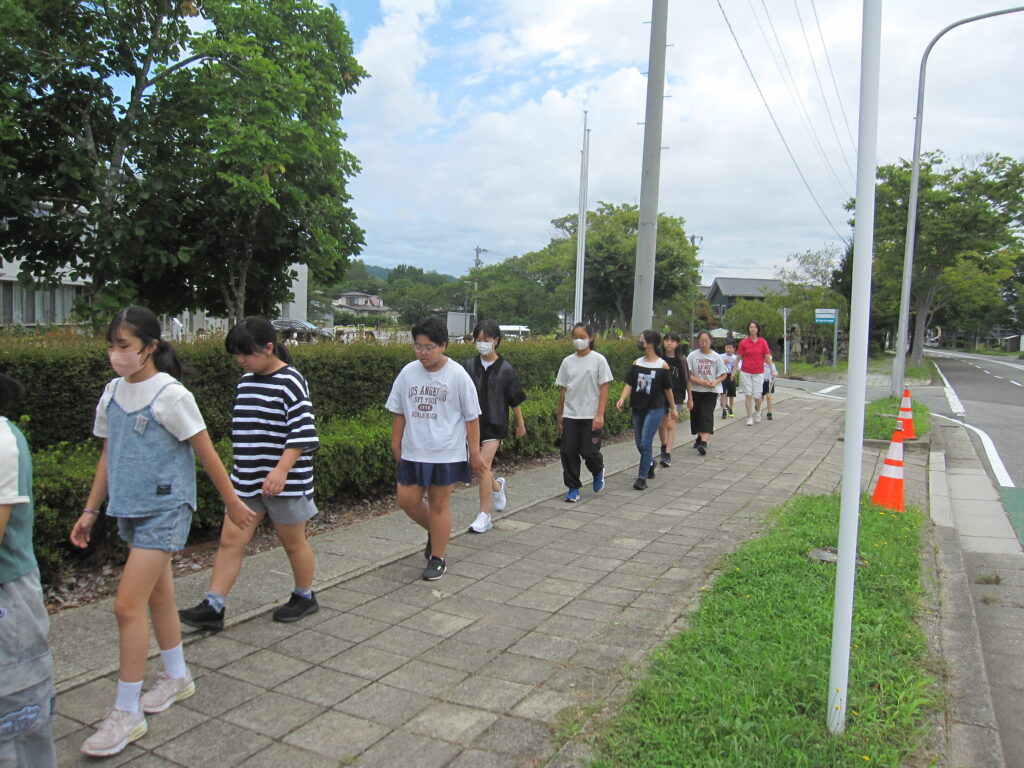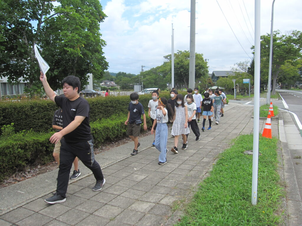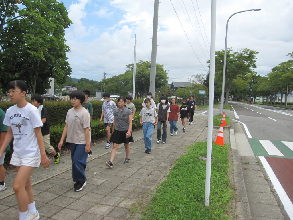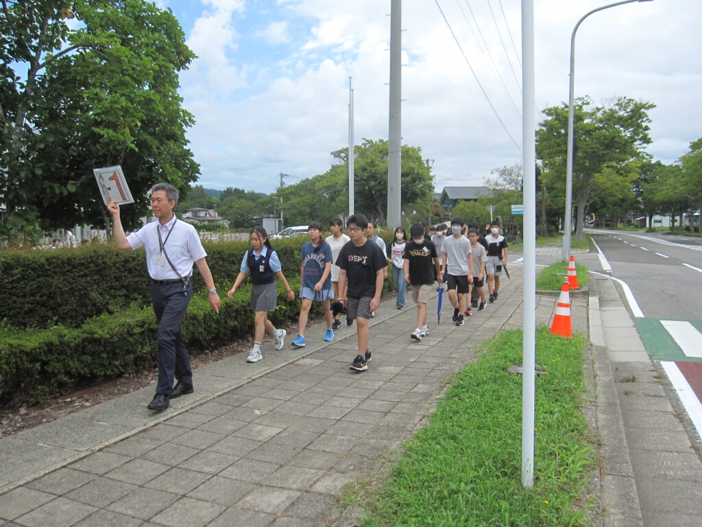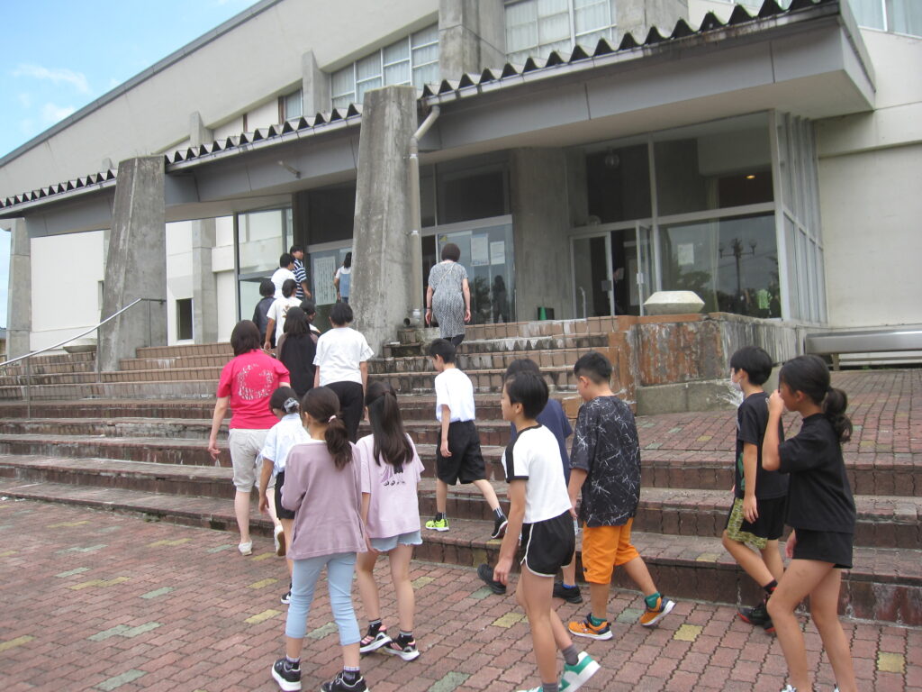 段差が大きいので、低学年には上り下りが大変でしたが、安全に避難訓練ができました。