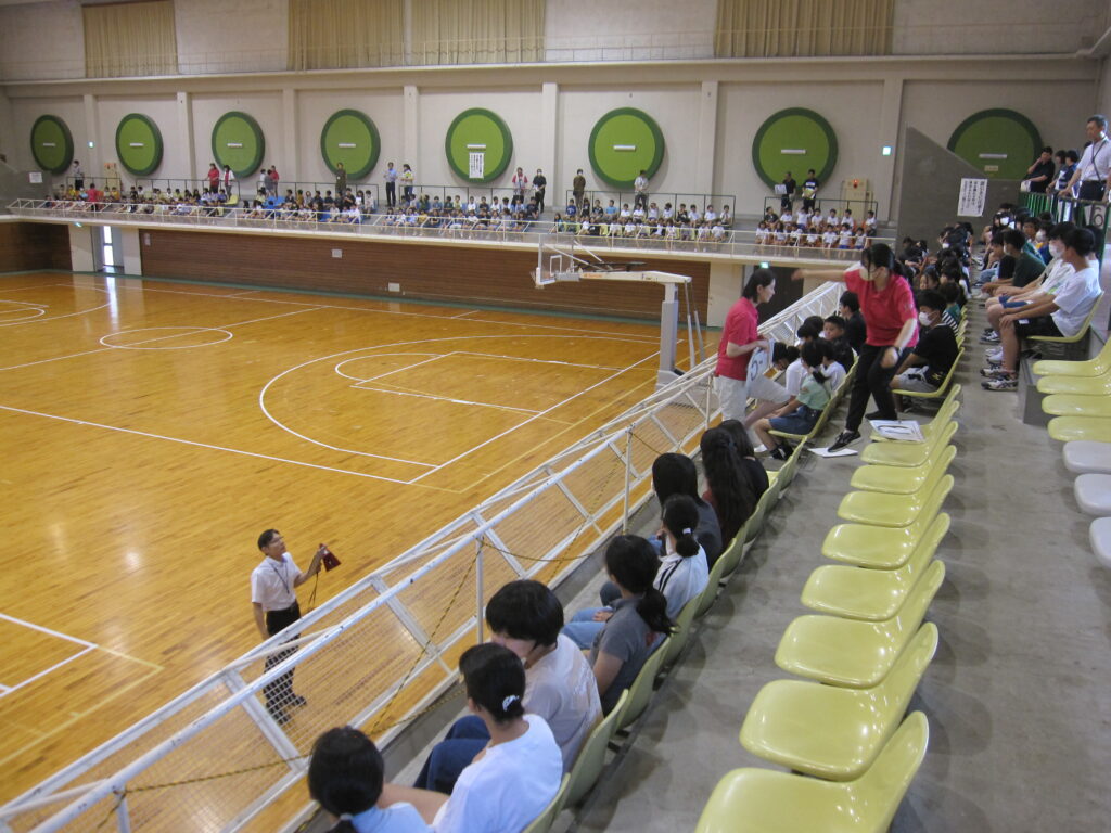 小学校は浸水区域に入っているため、広域体育館へ移動します。