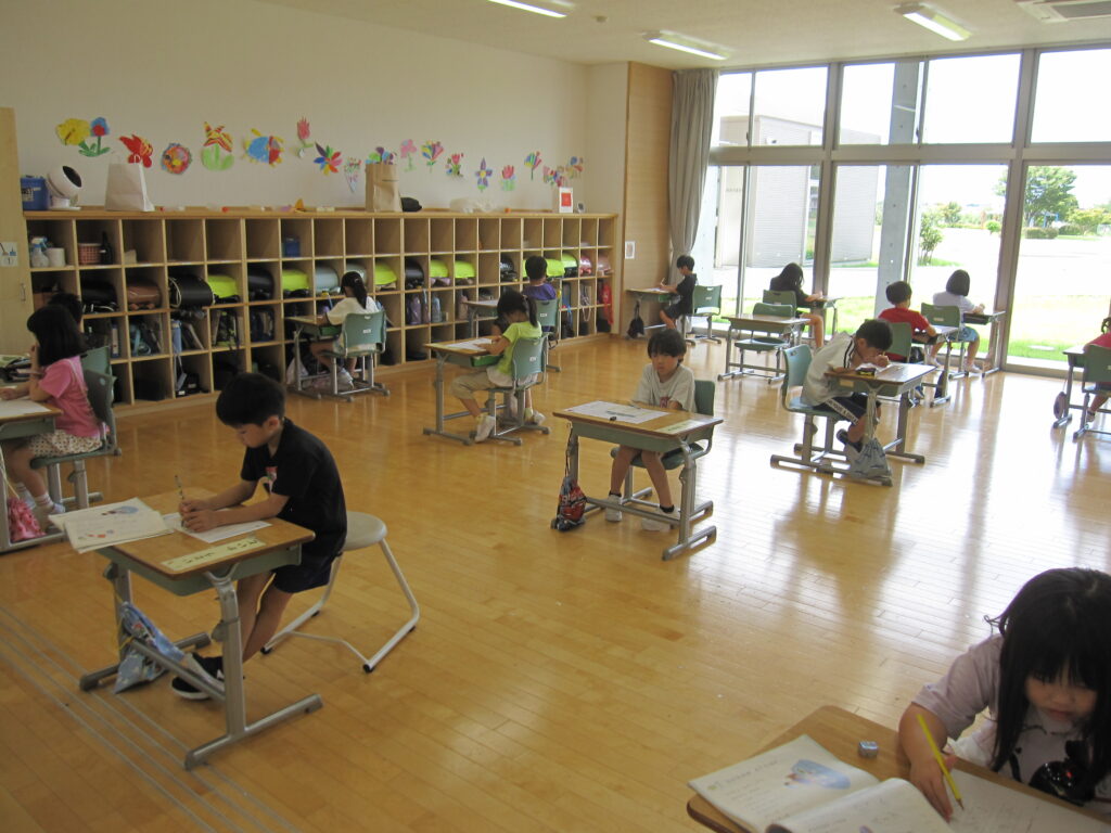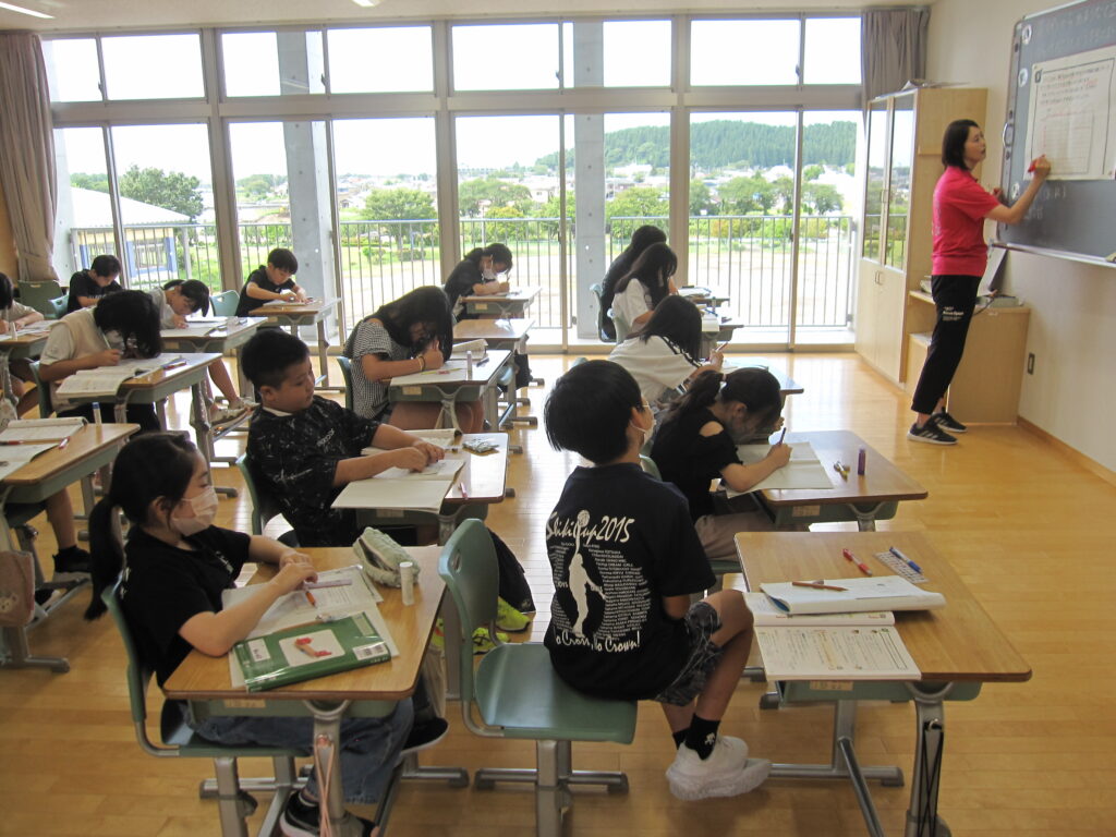 3年生 黒板に書かれた文字を、丁寧にノートに書き写しています。