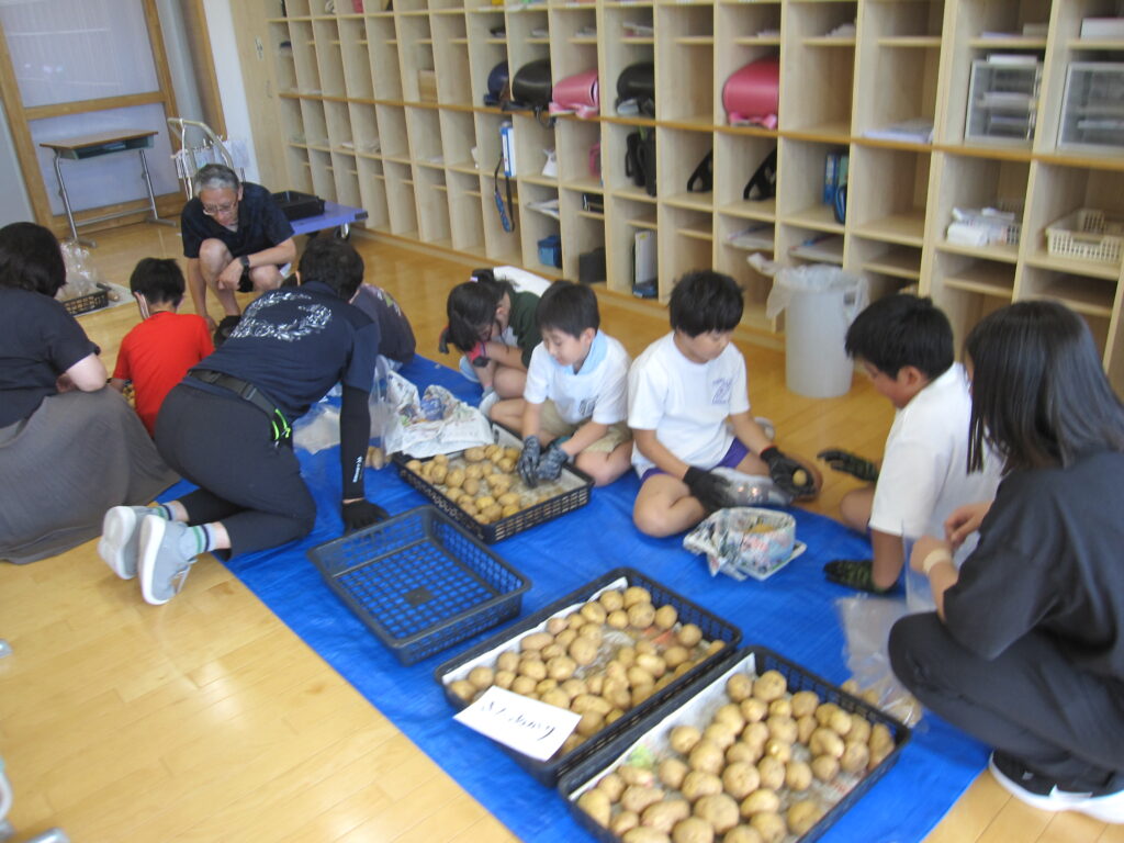 5年生 ヘチマの観察をし、実ができるまでについて話し合っていました。