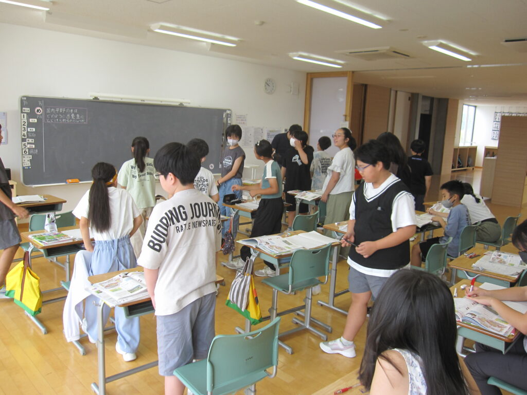 5年生 社会 課題を書き終えた子から立ち上がっていました。