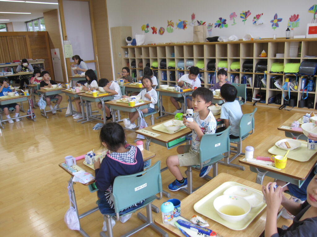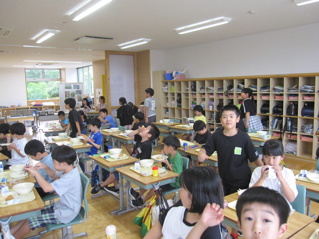 3年生 給食 食べ終わった子から片付け始めていました。いい表情の五小っ子です。