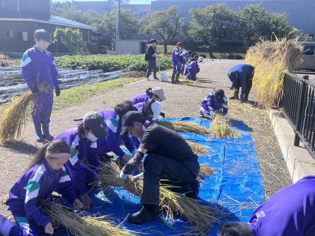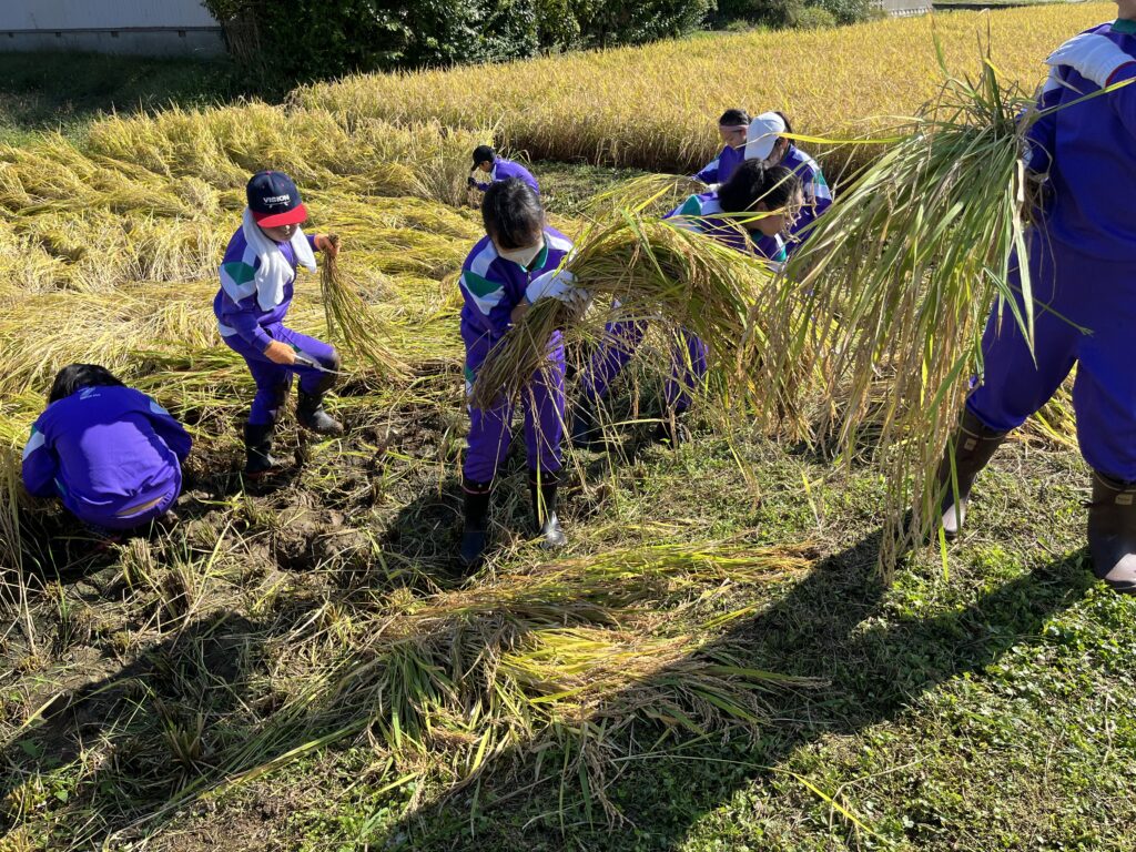 収穫したお米は家庭科の学習で使う予定です。新米を食べるのが楽しみです。