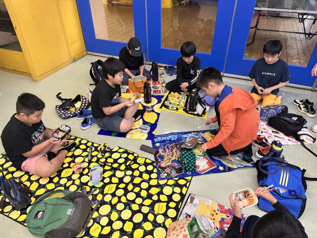 児童会館に場所を移し、楽しいお弁当の時間です。