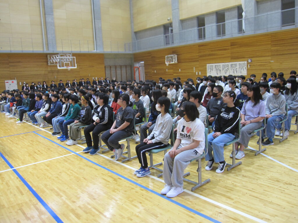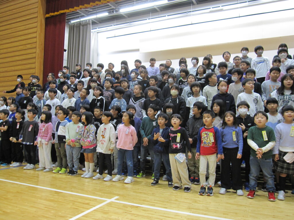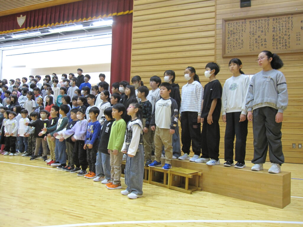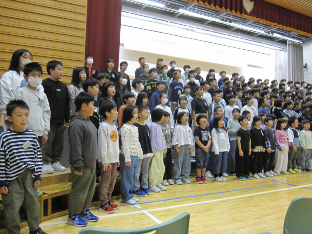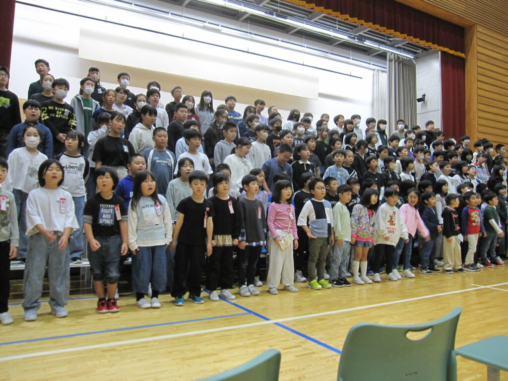 始業式終了後には、全校合唱練習が行われました。