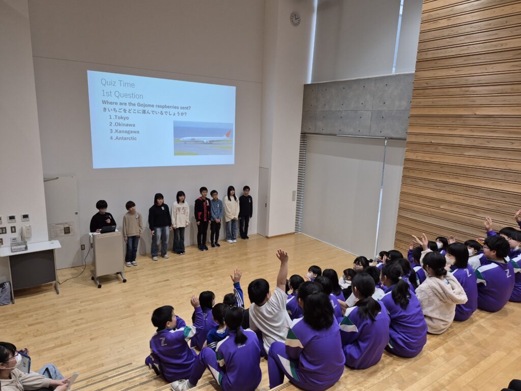 6年生が英語を使って、各テーマごとに五城目町の魅力をプレゼンテーションしました。