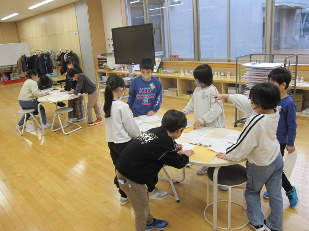 6年生をのぞいたら、自分たちで学習を進めていました。話し合いの時間や発表の時間など自分たちで計画を立てながら課題に向かっていました。レベルの高い五小っ子です。