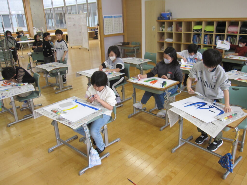 2年生は絵の具やクレヨンを使って、自由に表現していました。楽しそうです。