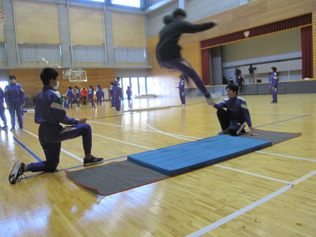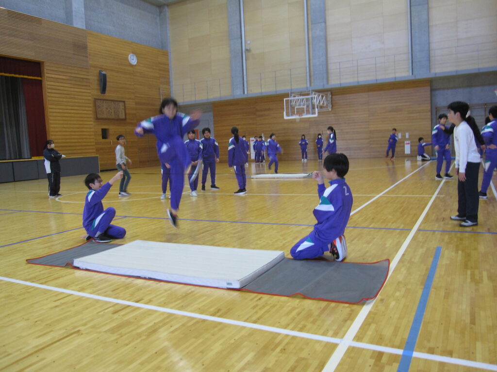 6年生が体育の学習で、走り高跳びの練習をしていました。