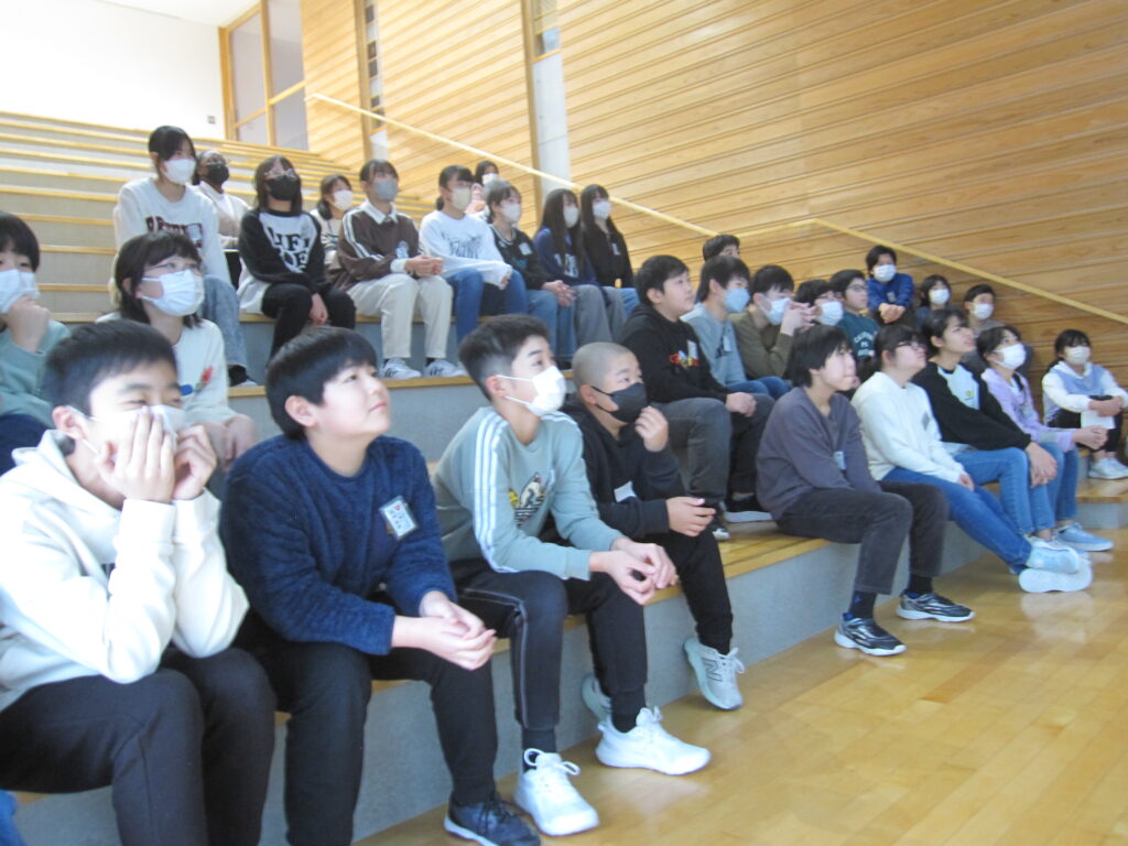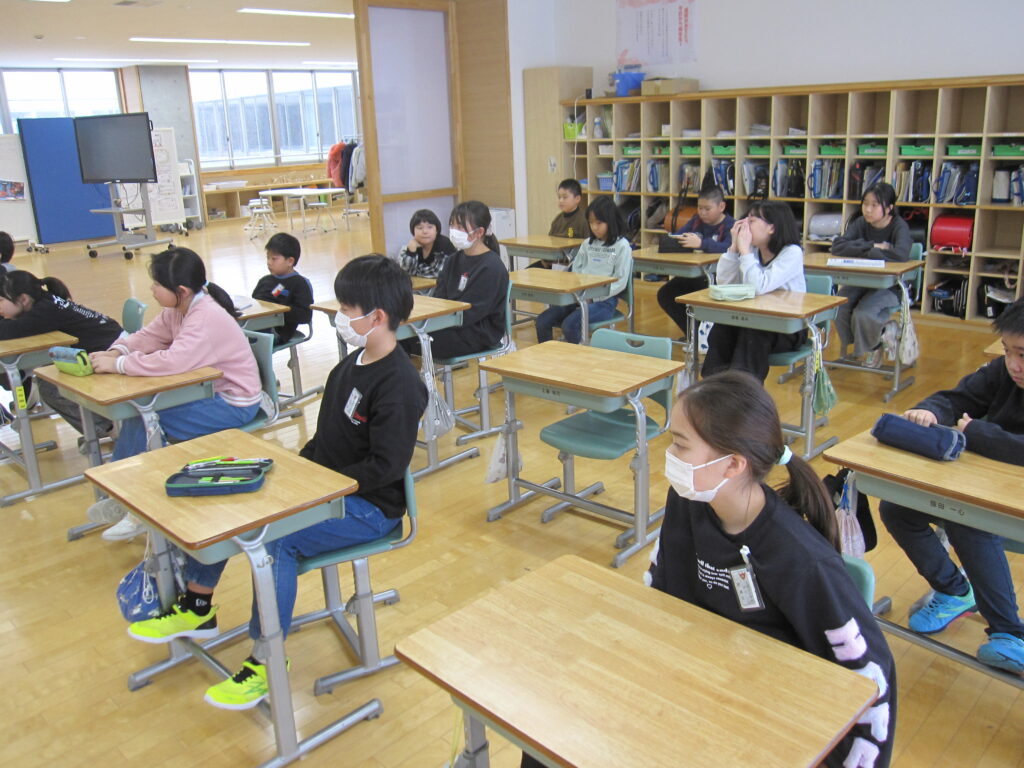 階段教室では、6年生が明日の国際教養大学での発表に向けた練習に取り組んでいました。
