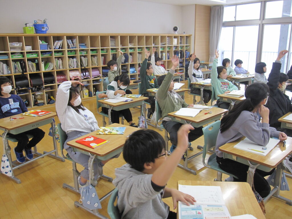 3年生が、ローマ字カードを並べて外国語の学習をしていました。