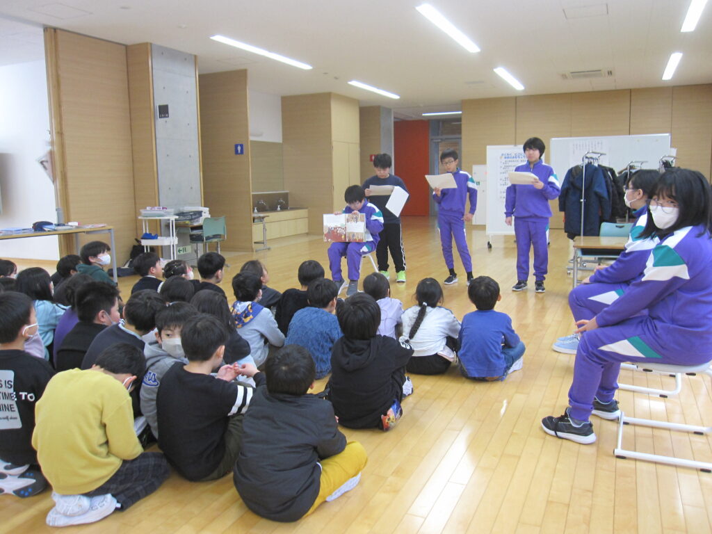 読書タイムには、ブック委員会による読み聞かせが低学年に行われました。