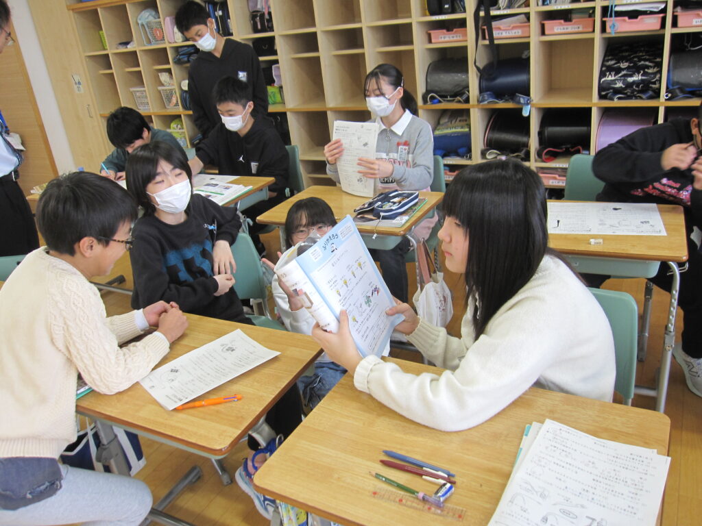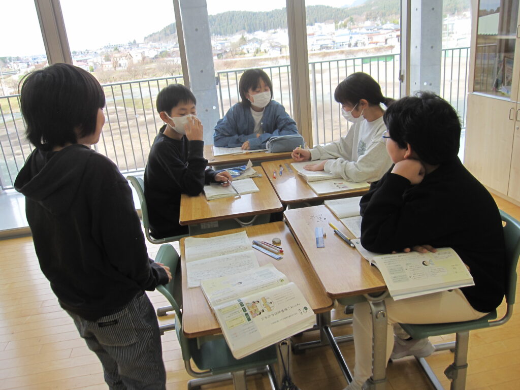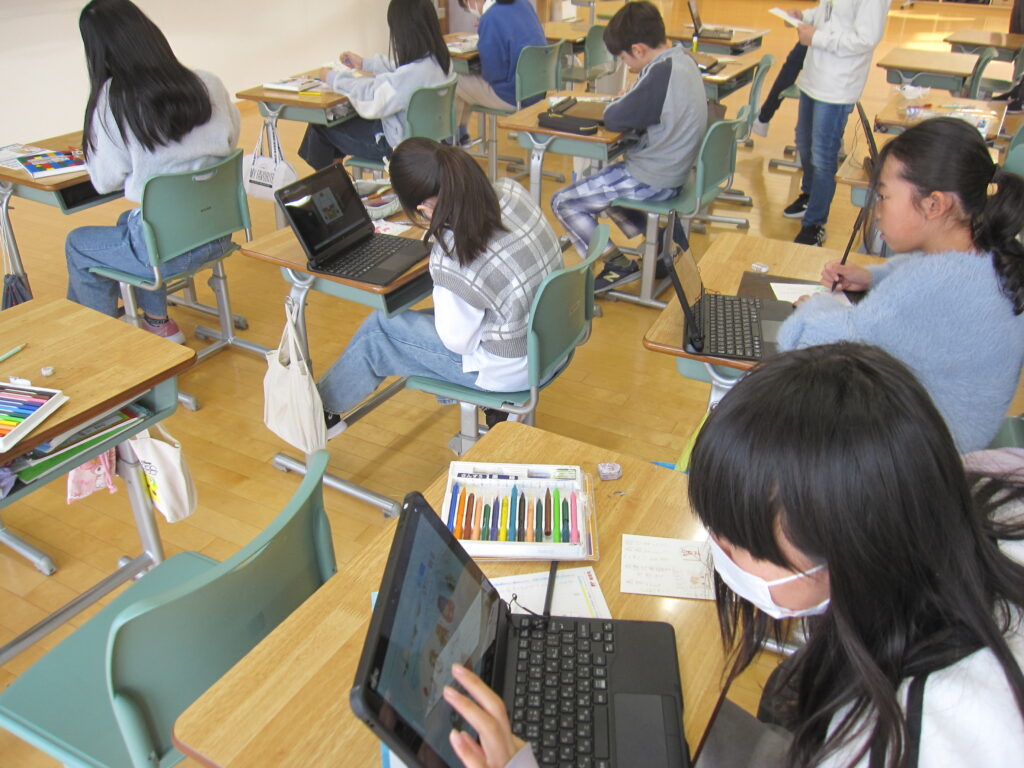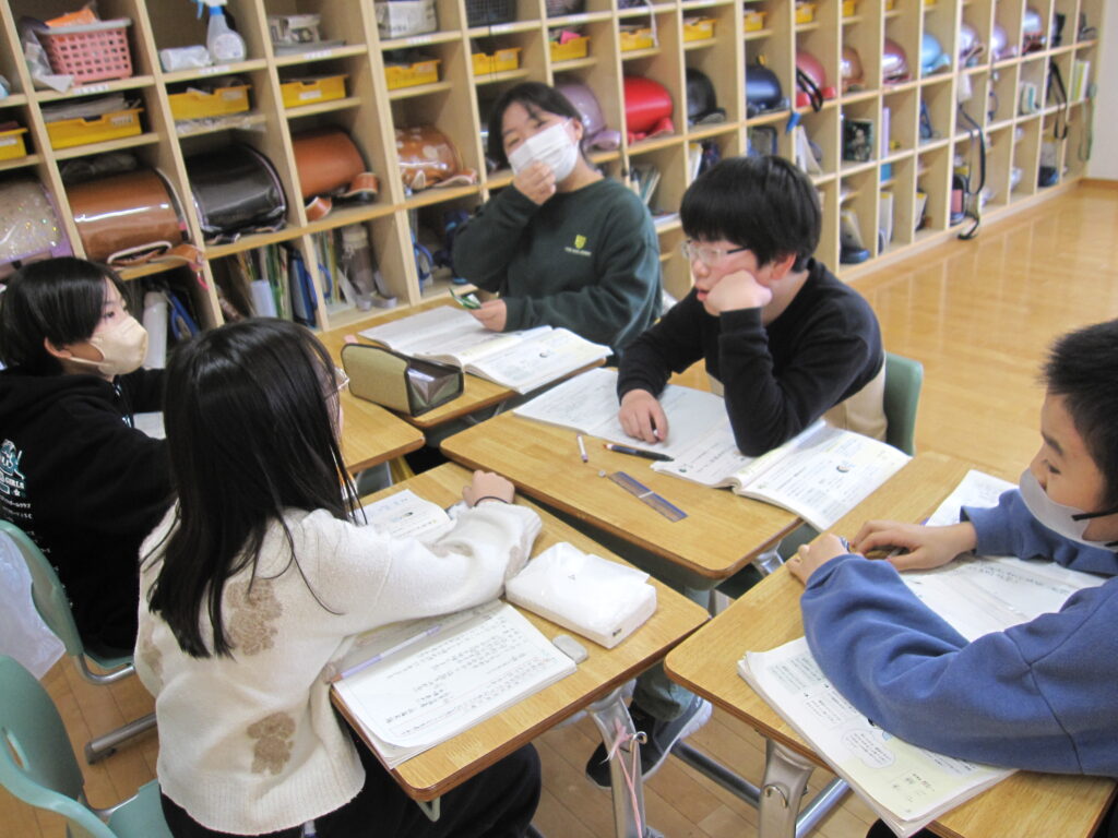 6年生は、ワークホールや教室でグループになって学習を進めていました。
