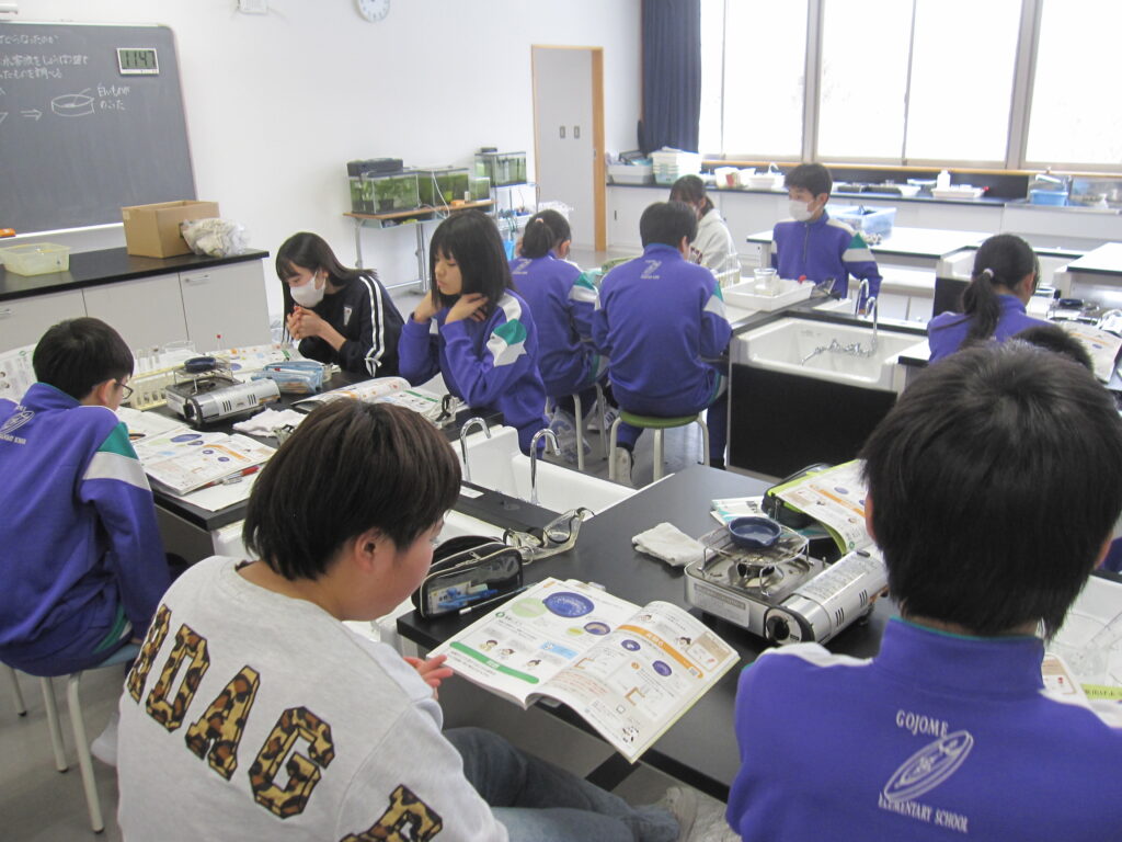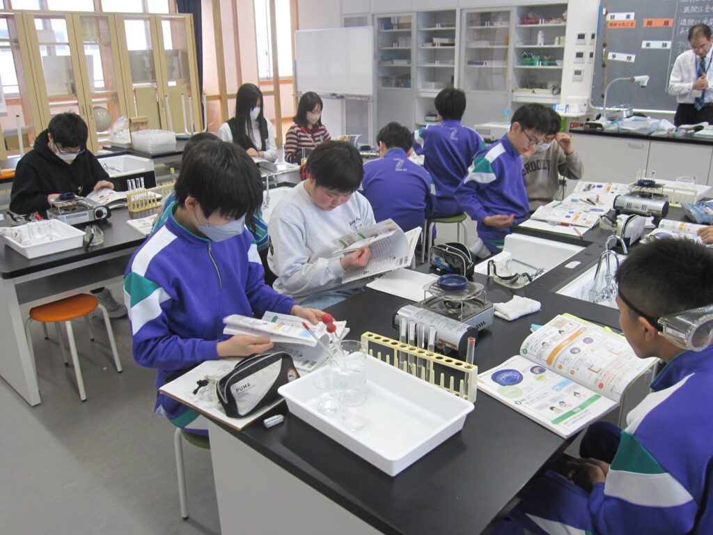 6年生は理科室で、水溶液に溶けた金属のゆくえを調べていました。