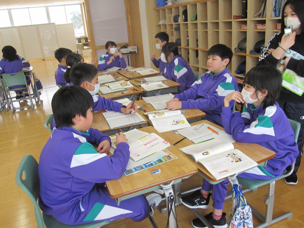 5年生はタブレットを活用したり、テストに取り組んだりしていました。
