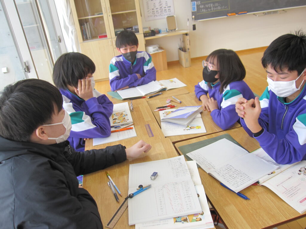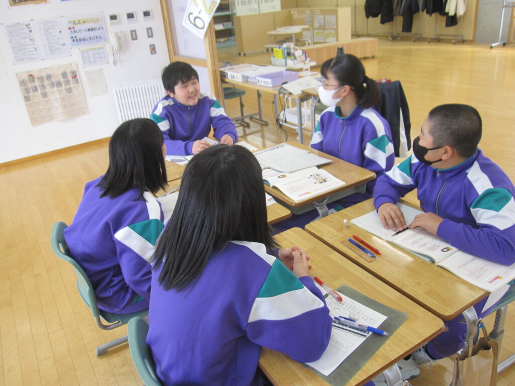 6年生がグループを作って、意見を出し合っていました。とても活発な話合いをしていました。