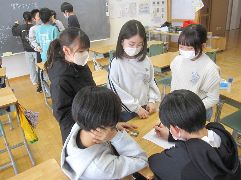 5年生が小グループに分かれて、何やら話し合いをしていました。