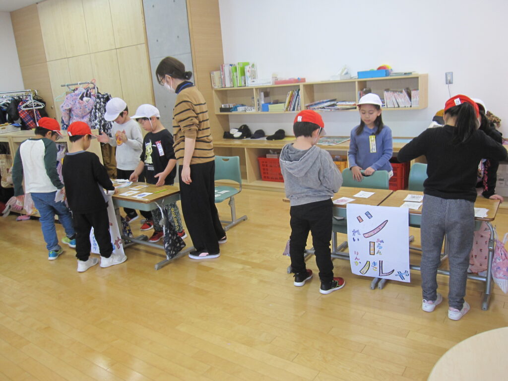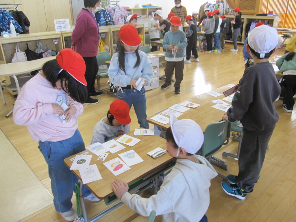 1年生は、お店屋さんごっこをしていました。「いらっしゃい、いらっしゃい」と威勢のよいかけ声が聞かれました。