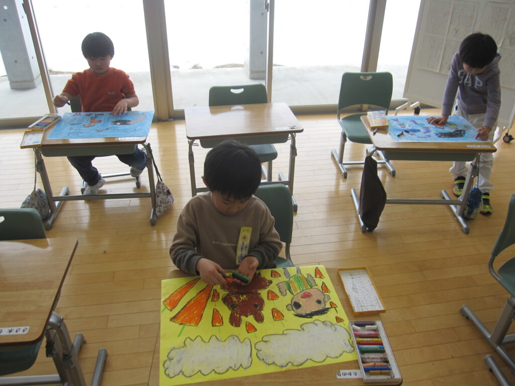 6年生もグループごとに何やら打合せをしていました。送る会での出し物について練習しているようでした。