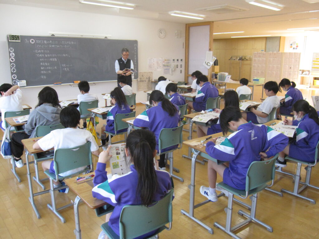 5年生がグラウンドで体育をしていました。